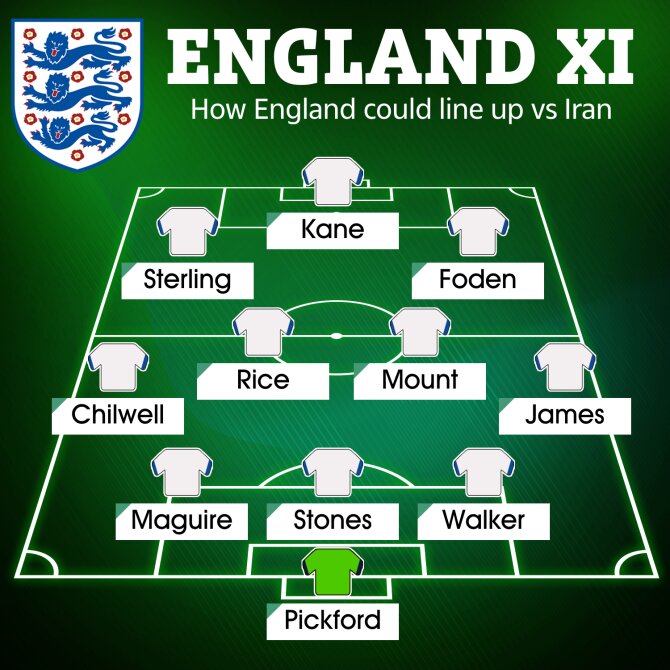 براساس این پیشبینی قرار است جوردن پیکفورد درون دروازه انگلیس قرار بگیرد و ریس جیمز، کایل واکر، جان استونز، هری مگوایر و بن چیلول مدافعان یهشیرها خواهند بود. دکلان رایس و میسن مونت در میانه میدان قرار دارند و فیل فودن، رحیم استرلینگ و هری کین هم مثل هجومی تیم ساوتگیت هستند.