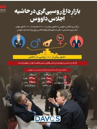 روزنامه «دیلی میل» در این باره گزارش کرد که همزمان با برگزاری نشست مجمع جهانی اقتصاد در شهر داووس در سوئیس، هر ساله تقاضا برای کارگران جنسی افزایش شدیدی مییابد. این روزنامه انگلیسی از افزایش سالانه تقاضا برای کارگران جنسی همزمان با برگزاری نشست داووس خبر داد؛ نشستی که یکی از مضامین امسال آن، نابرابری جنسیتی بود!