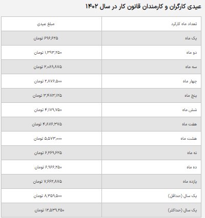 جدول زیر میزان دریافت عیدی برای کارگرانی که کمتر از یک سال سابقه کار را دارند روشن کرده است./ خبرآنلاین